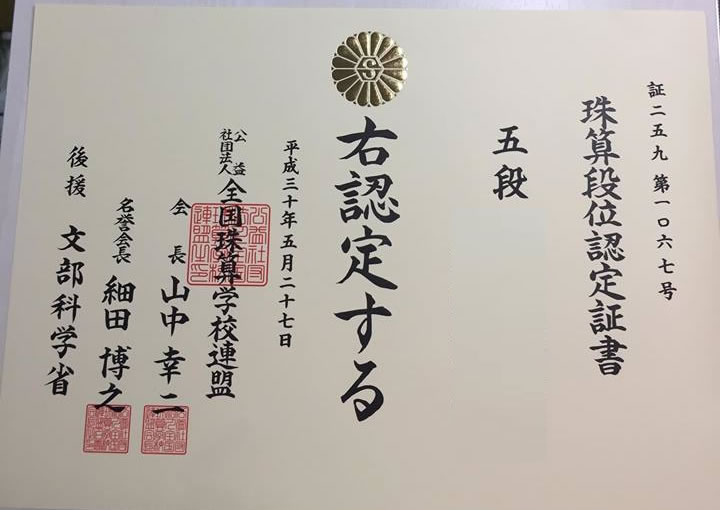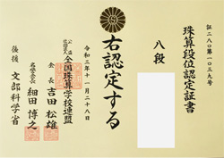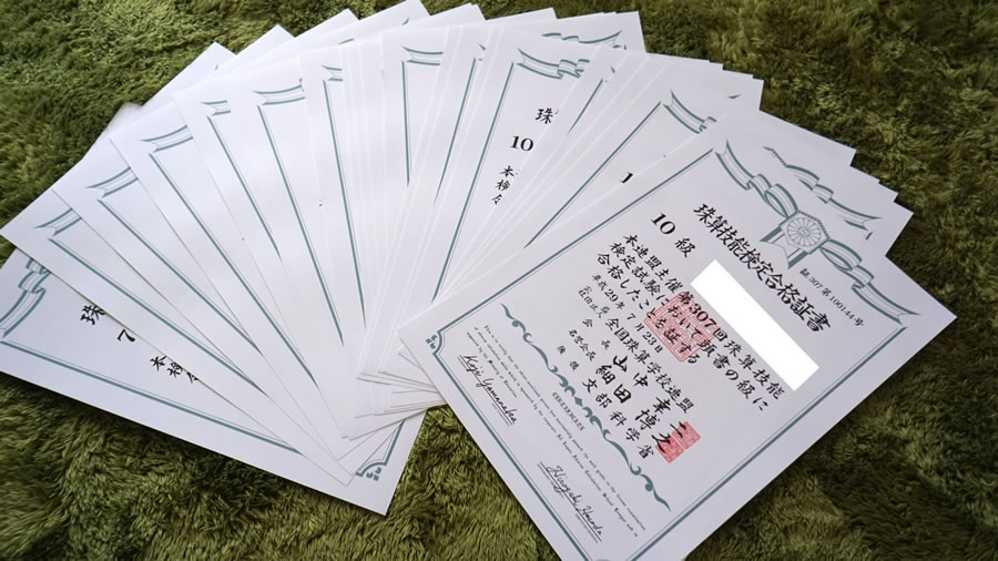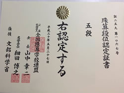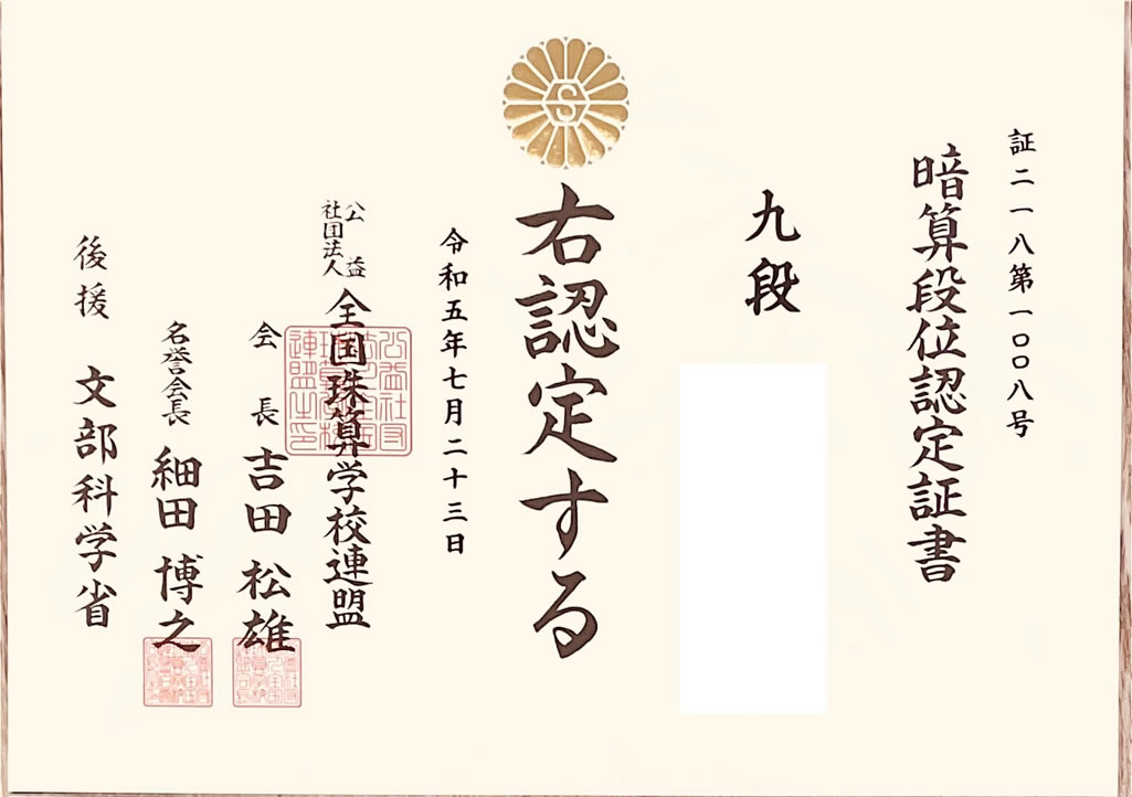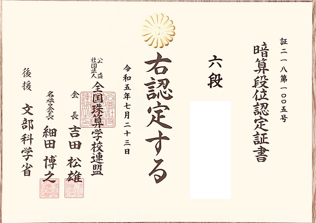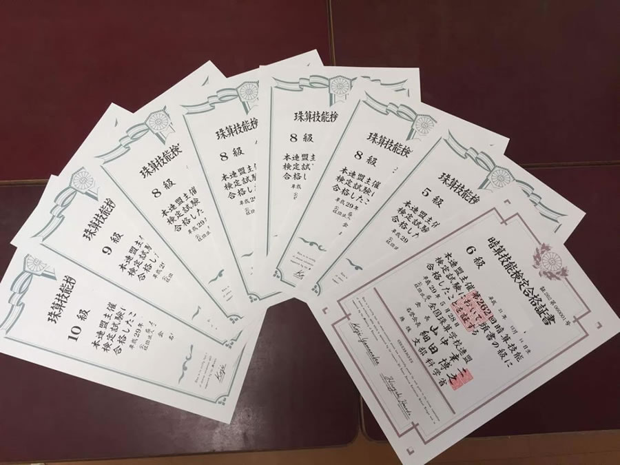 公益社団法人全国珠算学校連盟珠算・暗算検定合格者は以下の通りです。