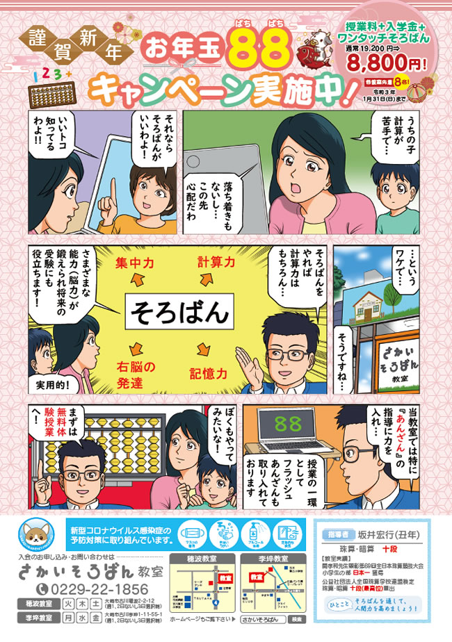 本年も、さかいそろばん教室へのあたたかいご支援をありがとうございました。