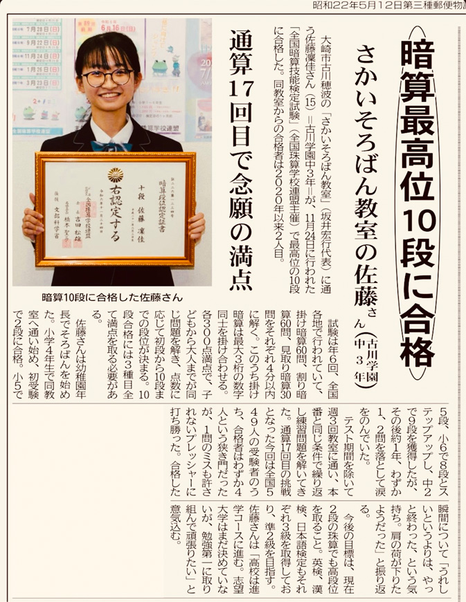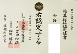 公益社団法人全国珠算学校連盟 第180回暗算段位検定合格者
