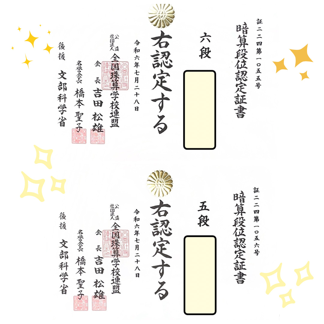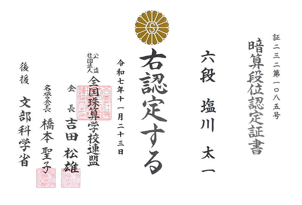 2025/12/21 2025年11月 珠算・暗算検定 合格おめでとう!